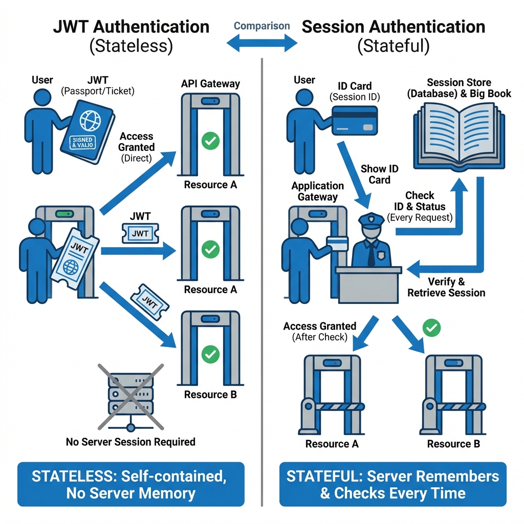 Khi bắt đầu một dự án mới, câu hỏi đầu tiên của mọi Backend/Fullstack Dev là: "Chúng ta sẽ dùng JWT hay Session?". Chọn sai ở bước này, bạn sẽ trả giá đắt khi hệ thống mở rộng (Scale) hoặc khi gặp sự cố bảo mật.